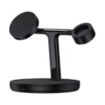 استند چند منظوره BASEUS دارای دو جایگاه شارژ با قابلیت پشتیبانی از فناوری مگ سیف و یک ماژول برای قرار دادن شارژر اپل واچ است که روی میز کار بطور همزمان می توانید آیفون، ایرپاد و اپل واچ را با سرعتی مناسب شارژ کنید.