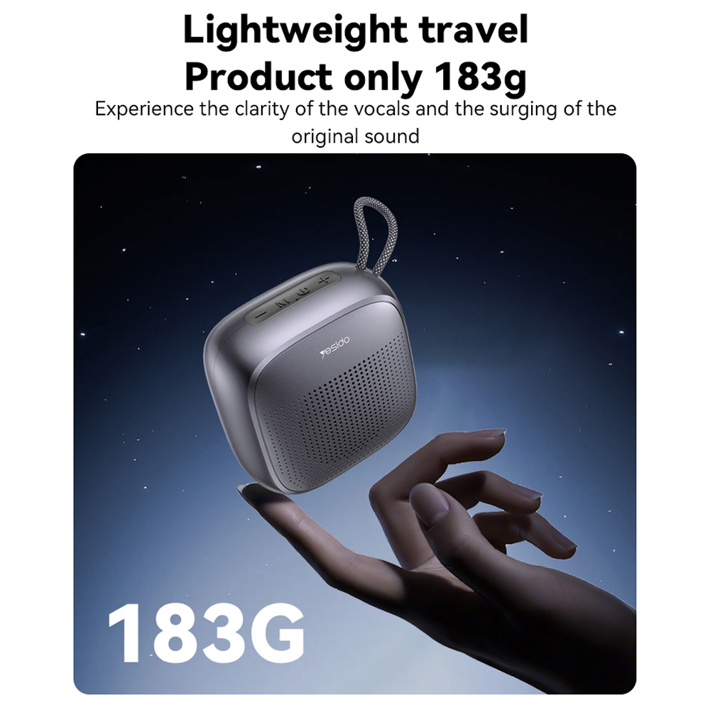 اسپیکر بلوتوثی یسیدو YSW24 با درایور ۵۲ میلی‌متری و دیافراگم اختصاصی، صدایی غنی و باس پر قدرت را ارائه می‌دهد. طراحی آویزی، باتری ۱۰۰۰ میلی‌آمپری و ضد آب بودن، آن را به همراهی ایده‌آل برای هر ماجراجویی تبدیل کرده است.