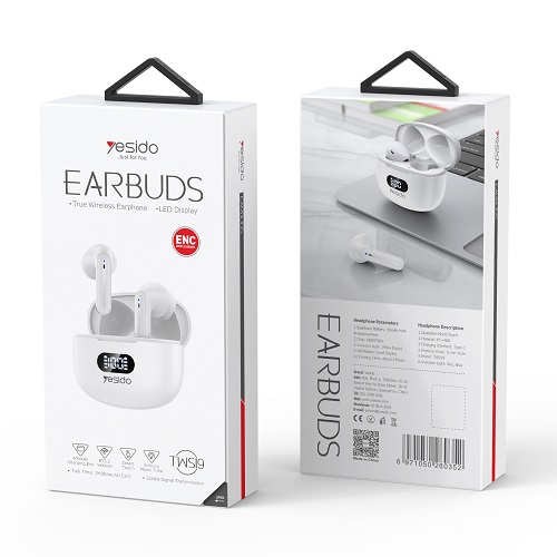 هندزفری بلوتوثی Yesido مدل TWS19 از طراحی داخل گوش، جذاب و کاملا خاص بهره میبرد. درایور ۸ میلیمتری داینامیک آن صدای شفاف و هیجانانگیزی را تولید و ماژول بلوتوث ۵.۳ اتصال سریع و پایداری را میسر میکند. هندزفری بیسیم TWS19 از طراحی داخل گوش بهره میبرد و با رنگ سفید و مشکی به بازار عرضه شده است. از مزایای اصلی این ایرپاد داشتن ENC فعال می باشد که این هندزفری را نسبت به رقبا متمایز کرده و با نویزکنسلینگ مکالمه شفاف و بسیار خوبی را به شما ارائه می کند.