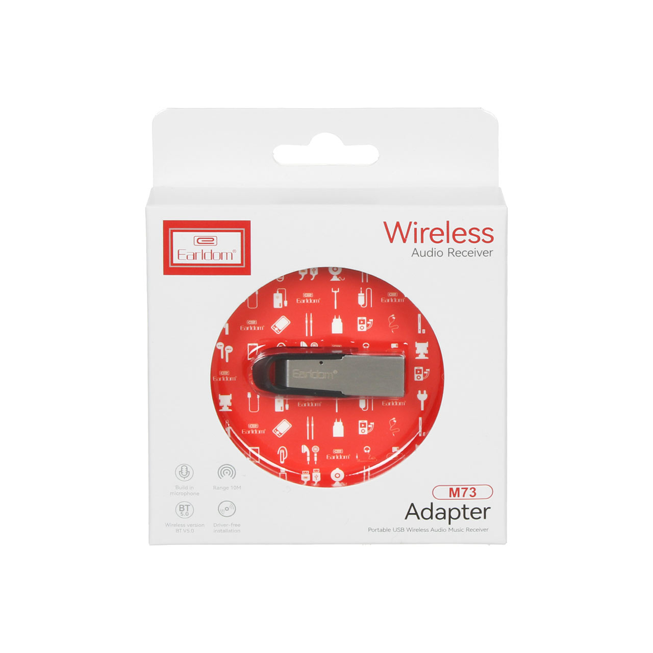 دانگل بلوتوث Earldom  مدل M73 یک گیرنده صوتی بی سیم است که با اتصال به پورت USB دستگاه های مختلف امکان پخش موسیقی و مکالمه را از طریق بلوتوث فراهم می کند .