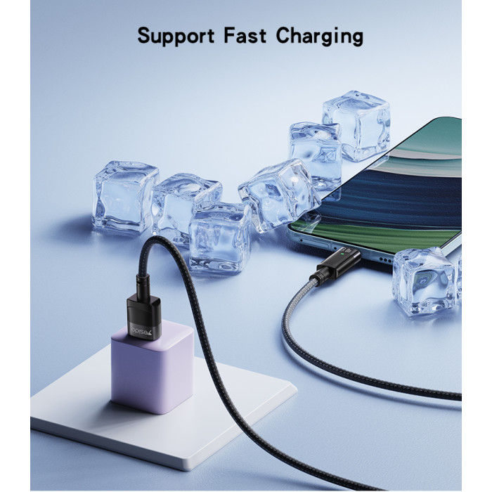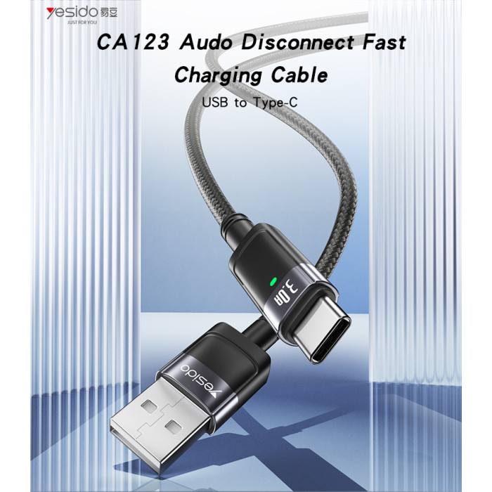 کابل USB به Type-C یسیدو CA123C با طول ۱.۲ متر، بدنه بافته‌شده، شارژ سریع تا 27 وات (۵V/3A)، قابلیت انتقال دیتا و قطع خودکار شارژ بعد از پر شدن باتری، مناسب انواع گوشی، تبلت یا ابزار دیجیتال با پورت USB-C.