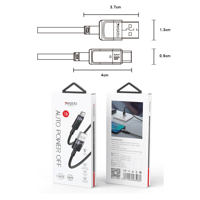 طول ۱.۲ متر کابل به‌گونه‌ای است که در استفاده روزمره یا مسافرت راحت باشد. اگر دنبال یک کابل شارژ با دوام، سریع و ایمن برای دستگاه Type-C خود هستید، CA123C از برند یسیدو Yesido انتخاب خوبی است.
