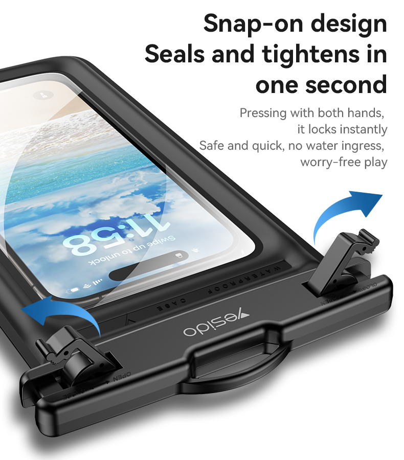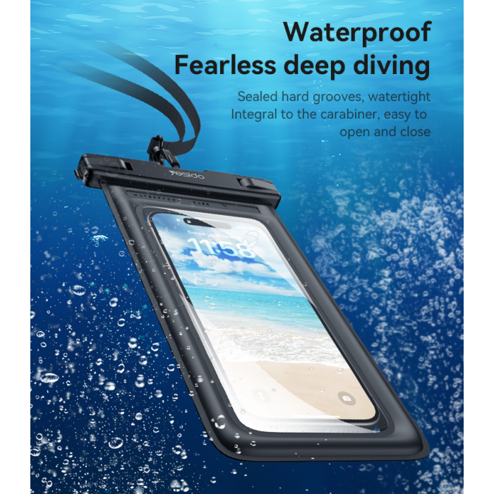 Yesido WB50 یک پوشش محافظ موبایل عالی برای مواقعی است که میخواهید گوشیتان را در شرایط مرطوب یا زیر آب با خیال راحت همراه داشته باشید. این کیف ضدآب با ترکیب مواد مقاوم (ABS + PVC + TPU) ساخته شده و تا عمق ۳۰ متر (مقایسه با گواهی IPX8) گوشی را در برابر آب محافظت میکند.